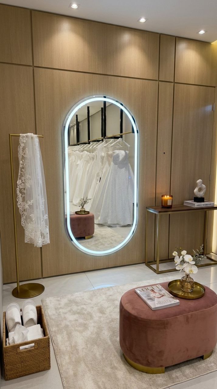 Transforme seu ambiente com um espelho oval de alto padrão, desenvolvido para unir estética moderna, iluminação funcional e tecnologia touch. Ideal para quem busca um espaço mais sofisticado, bem iluminado e com acabamento refinado.
