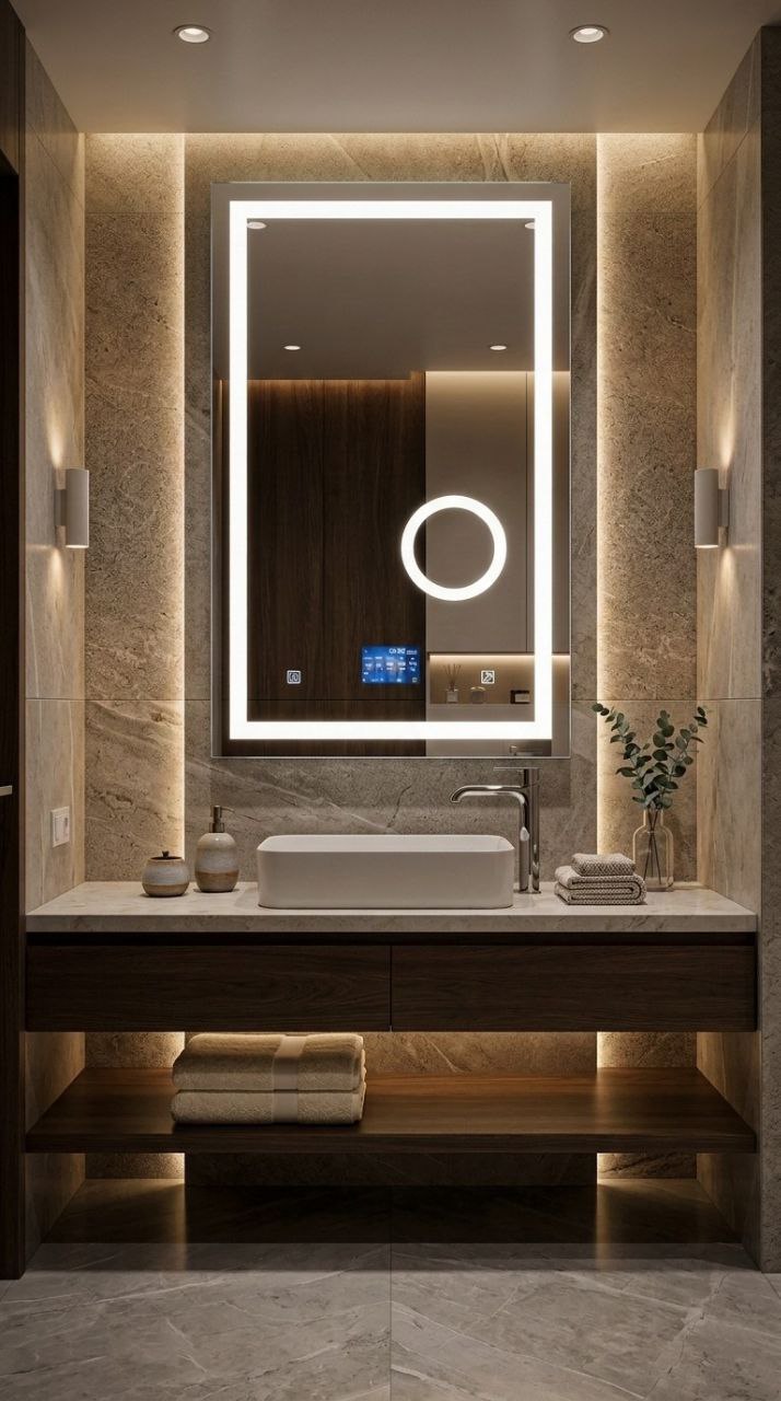 Transforme seu ambiente com um espelho inteligente de alto padrão, desenvolvido para unir design moderno com funcionalidades avançadas. Equipado com estação meteorológica integrada e conexão Wi-Fi, ele exibe a previsão do tempo em tempo real diretamente no display, trazendo mais praticidade para o seu dia a dia.